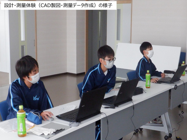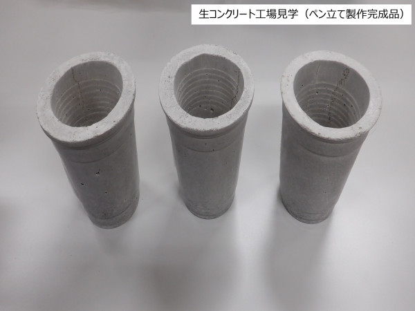 初日は建設業や事業内容について学び、CADを使用しての設計・測量データ準備体験、生コン工場見学・生コンを使用したペン立て作成を行いました。